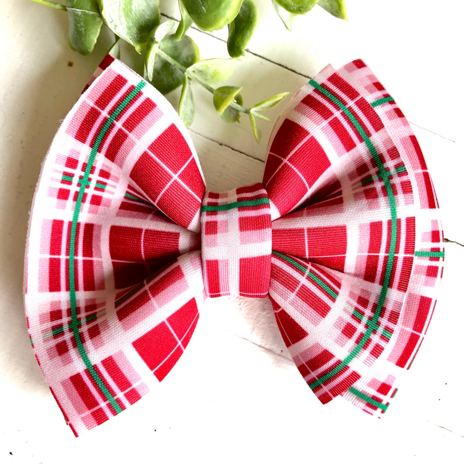 Dog Collar Bow Tie Techno 5" Red Tartan Plaid