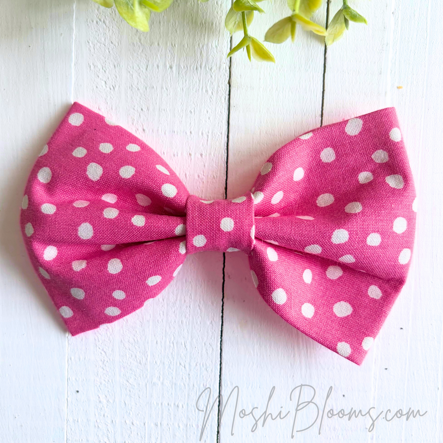 Brighten your pup’s look with the Cotton Dog Collar Bow Tie Pink Polka Dot, a cheerful classic featuring crisp white polka dots scattered across a sweet pink background. This lightweight dog bow tie is made to sit neatly on your dog’s collar, adding a playful pop of pattern that works just as well for everyday wear, special outings, or dressing up a favorite collar with a fun and timeless accessory.