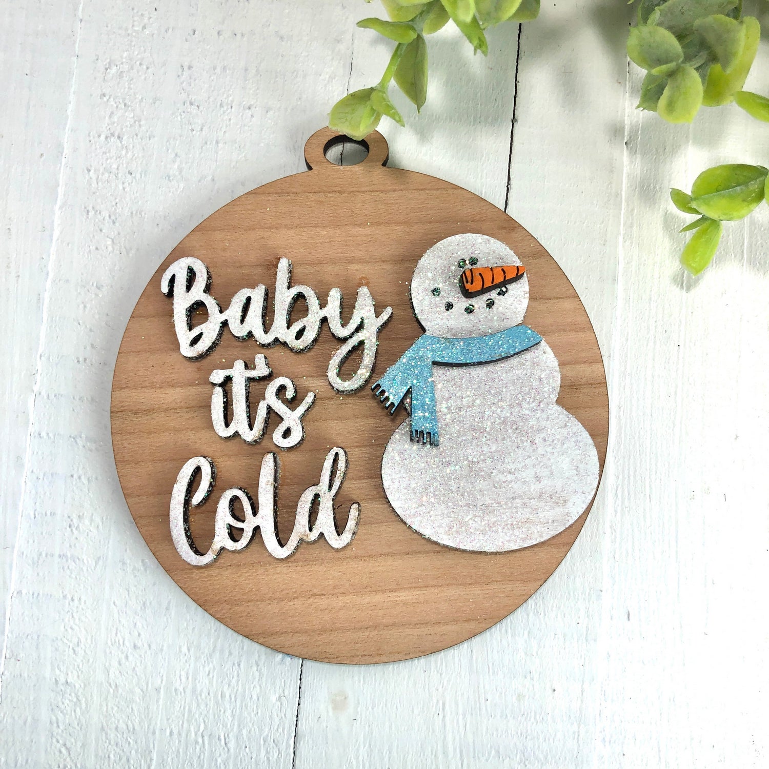 Ornament Handmade 4" Wood Baby It's Cold Snowman